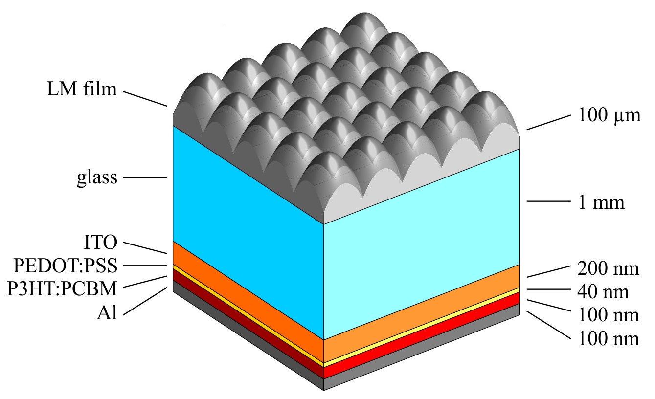 - kombinirani optični model (3D sledenje žarkov + 1D metoda prenosnih matrik) za natančno analizo nekoherentnega in koherentnega širjenja svetlobe